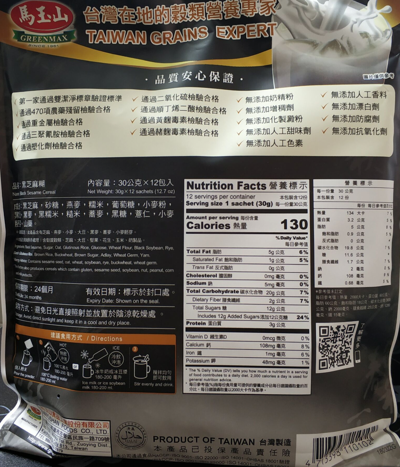 有卫检:马玉山黑芝麻糊360g