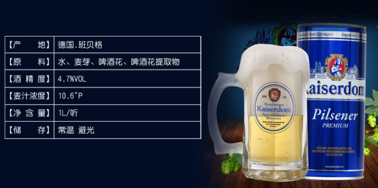 有卫检:Y凯撒Kaiserdom黄啤酒1L