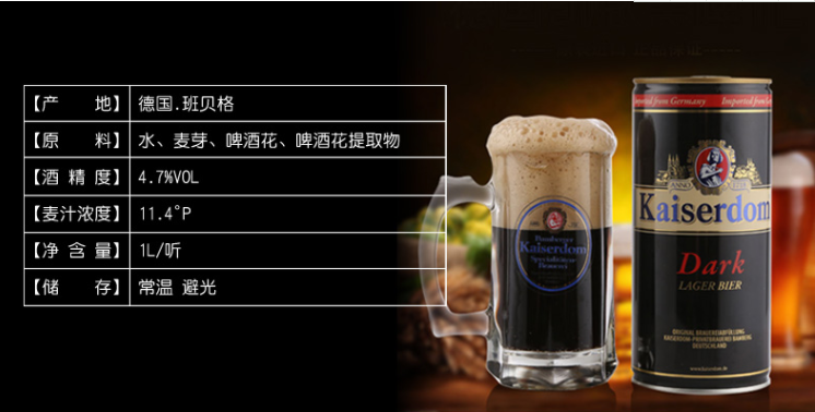 有卫检:Y凯撒Kaiserdom黑啤酒1L