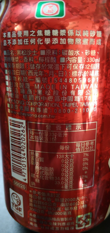 有卫检:黑松沙士汽水330ml